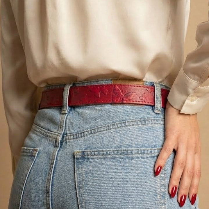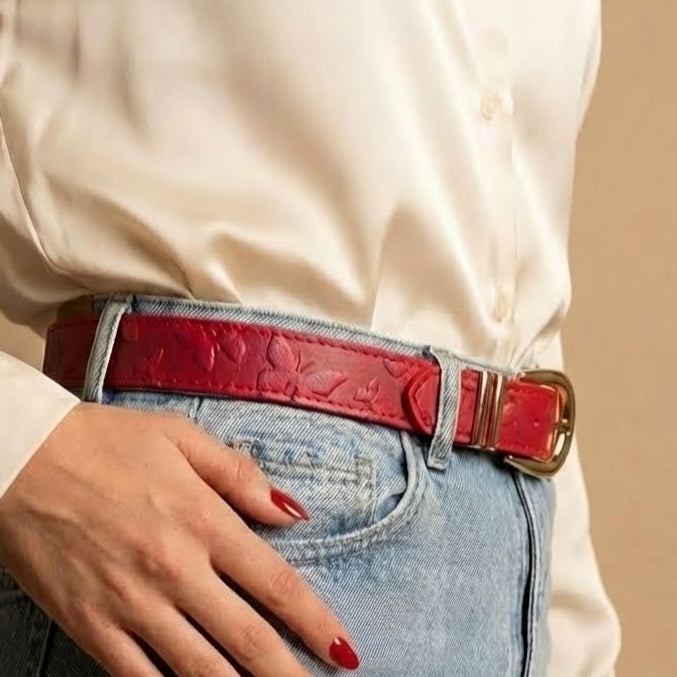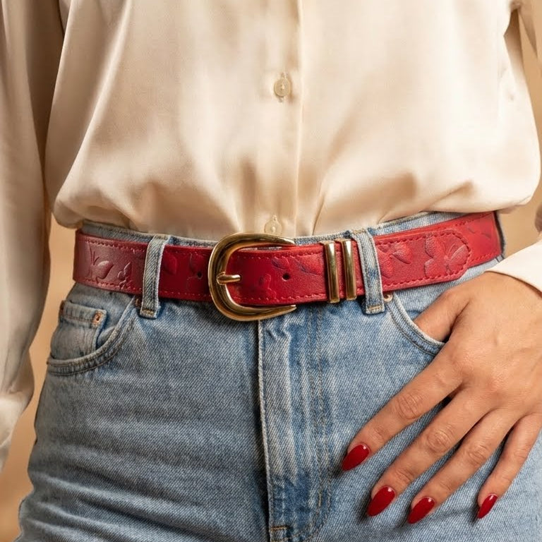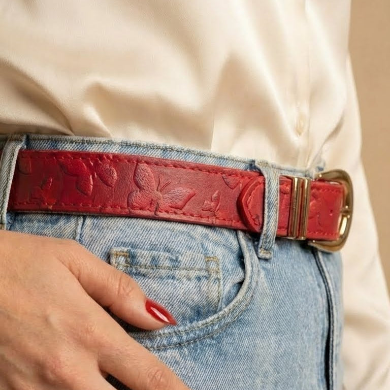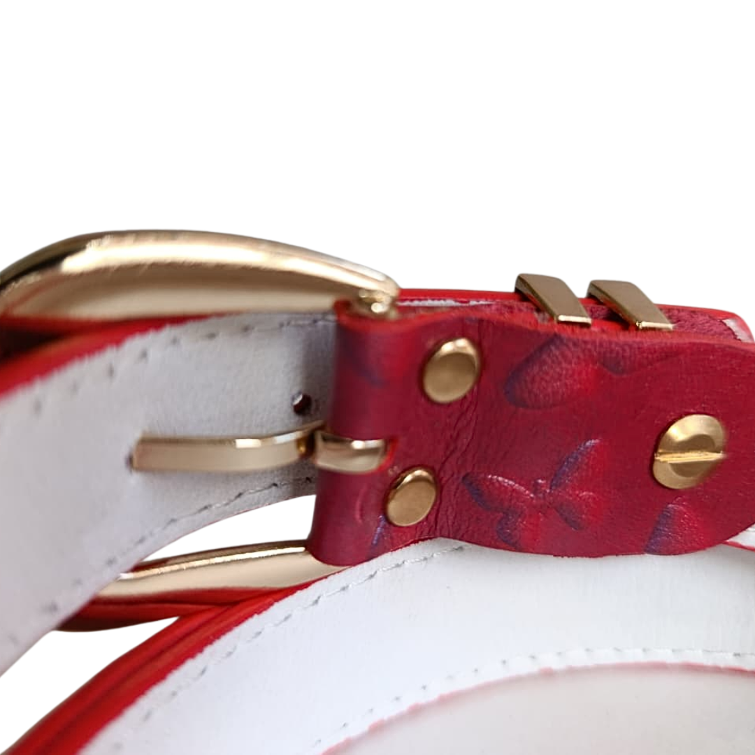 CINTURON MAKKI EN CUERO ROJO MARIPOSA